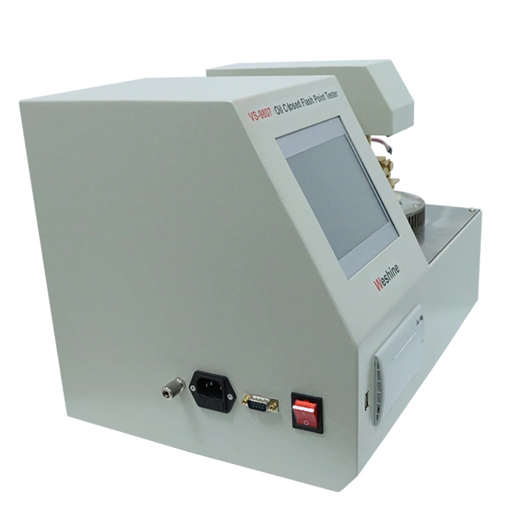 Pokročilá technologie by neměla znamenat složitost – a design VS-9807 zajišťuje, že je dostupný i pro týmy, které začínají s vyvažováním pracovních postupů uzavřených a otevřených kelímků (běžný problém při přidávání clevelandského otevřeného kelímku na testování bodu vzplanutí do laboratoře). Jako uživatelsky přívětivý test bodu vzplanutí je vybaven LCD TFT dotykovým displejem s věrnými barvami spárovaným s plně čínským rozhraním člověk-stroj, což usnadňuje přepínání mezi režimem zavřeného a otevřeného šálku pouhými několika klepnutími. Přehledné promptní nabídky provedou uživatele zadáváním parametrů: ať už jde o nastavení teplot předem pro testování benzínu v uzavřené nádobě nebo úpravu intervalů zážehu pro analýzu maziva v otevřené nádobě (napodobující přesnost clevelandského testeru bodu vzplanutí v otevřené nádobě), systém eliminuje dohady. Další vynikající funkcí je mikrotiskárna citlivá na teplo s možností offline: generuje rychlé a jasné zprávy pro oba testovací režimy – kritické pro zařízení, kde je problémem internet nebo stabilita napájení, a velký upgrade některých modelů clevelandských otevřených testerů bodů vzplanutí, které vyžadují samostatný software pro hlášení. Na rozdíl od objemných sestav, které nutí laboratoře věnovat prostor jak testeru s uzavřeným kelímkem, tak testeru bodu vzplanutí v otevřeném kelímku v Clevelandu, kompaktní design VS-9807 šetří místo a zároveň poskytuje dvojí funkčnost. Pro ropné laboratoře s rotujícím personálem nebo krátkými termíny tato dostupnost mění hru.